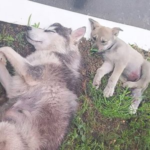 A mother dog and her tiny puppy lay helpless on the side of the road, victims of a cruel accident. The mother, a husky mix, had been struck by a car. Her body…