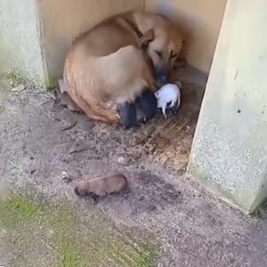 Someone Threw Them in The Terrible Cold, Gave Birth On Her Own And Trying to Protect Puppies