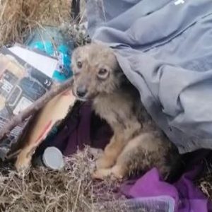 A tiny puppy sat huddled in a filthy corner, surrounded by garbage and scraps of old clothes. His small body was trembling from the cold, and his wide, fearful eyes told a silent…