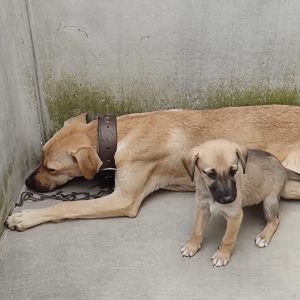 In a crowded marketplace filled with noise, movement, and indifference, a frail mother dog stood chained in place, her body weakened by hunger and exhaustion. Beside her was her tiny puppy, just as…