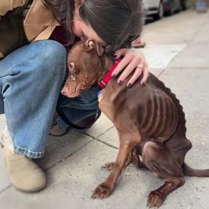 Whimsy, an emaciated Pitbull mix, was pulled from a shelter in a state that would stop anyone in their tracks. Her small body was covered in old scars, silent reminders of hardship no…