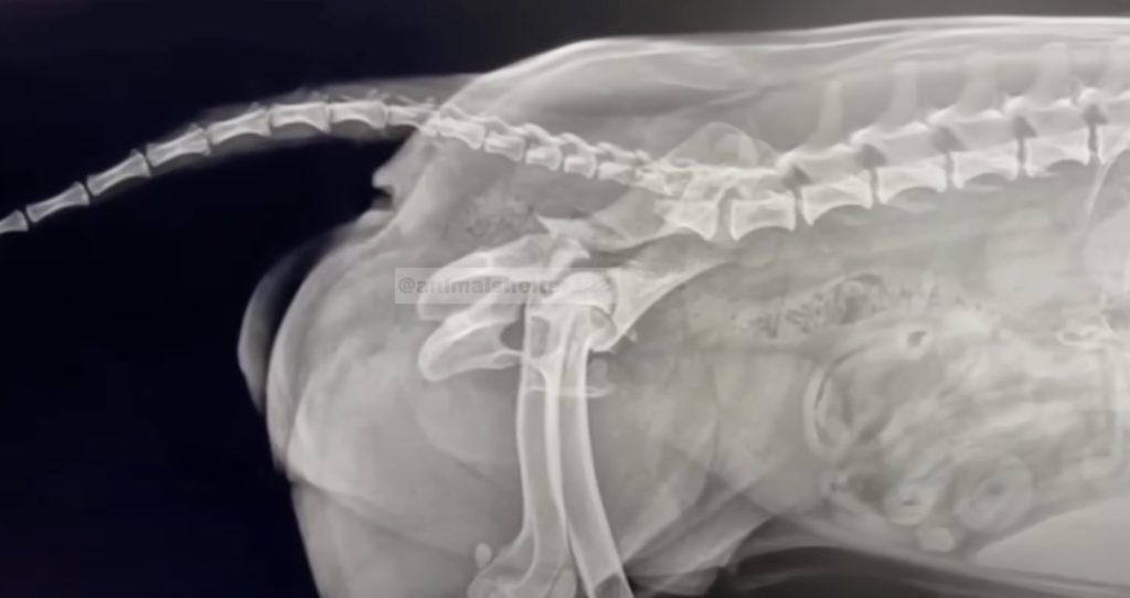 The team began with blood work, an ultrasound, and an electrocardiogram. To everyone’s relief, her internal organs were unharmed. But the X-rays and CT scan told a different story. The images showed extensive fractures in the pelvis, damage to the lumbar spine, and a completely detached tail. The surgeons gathered to discuss possible treatments, but the conclusion was grim. Operating could lead to permanent paralysis or worse.