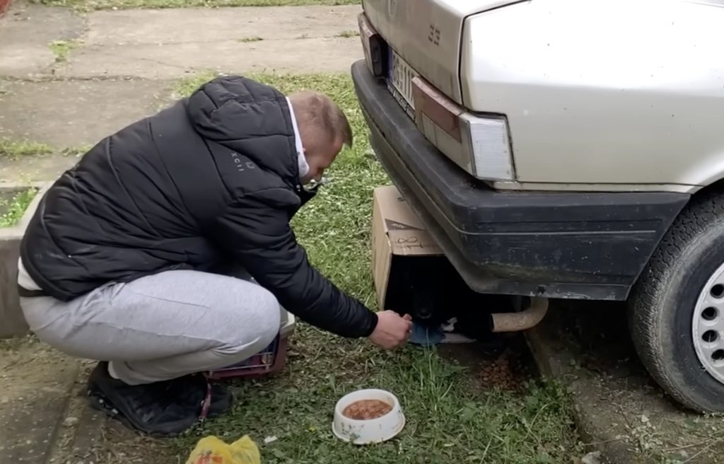 The puppies were carefully transferred to a secure carrier lined with warm blankets. The mother dog watched every move intently, her tail tucked but her eyes alert. One rescuer whispered reassuringly, and when the time came, she finally allowed herself to be touched. It was as though she sensed that this was the moment she and her little ones would finally be safe. When the rescuer lifted her into his arms, she didn’t struggle. She simply looked back at the spot under the car — the place that had been her home, her shield, and her fear — before resting her head gently against his shoulder.