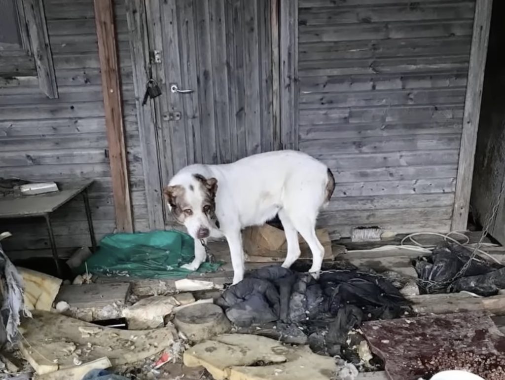 When rescuers first met Shanya, it was almost impossible to believe that the frail, trembling creature before them was a dog. Her world had been confined to a patch of dirt, surrounded by garbage, and chained to a post so tightly that she could barely move. For five long years, this had been her entire existence. She had never known the comfort of a bed, the warmth of a gentle touch, or even the simple joy of walking freely. Her life was marked by hunger, loneliness, and silence.
