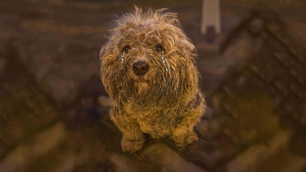 She was barely recognizable as a dog. Filthy, matted fur clung to her thin frame like a neglected old mop, and the stench from her body hinted at weeks—perhaps months—of surviving in the streets alone. She scavenged through trash piles, moving slowly, each step heavy with exhaustion. When a kind-hearted passerby first laid eyes on her, it was clear that this little soul had all but given up.