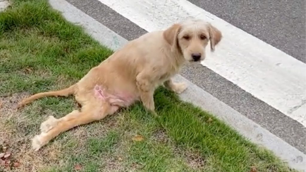 A pregnant stray dog lay motionless in the middle of a busy intersection, cars rushing past as if she were invisible. Her body was thin, covered in old scars that told stories no one had witnessed. She could not move her back legs. Exhaustion weighed heavily on her fragile frame, yet her eyes held a softness that seemed almost out of place in such a harsh setting. She was alone, paralyzed, and carrying new life inside her.