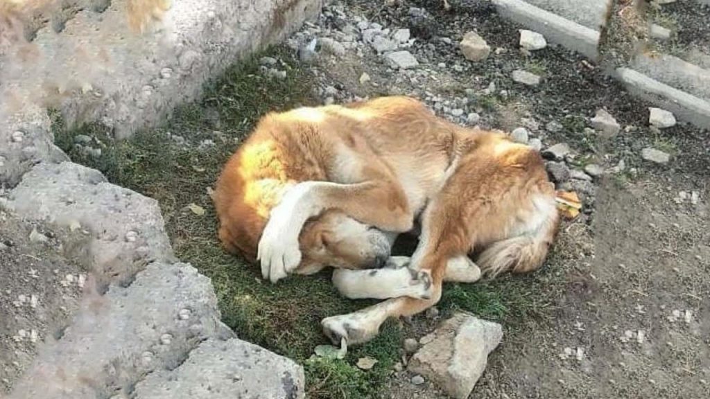 Days turned into weeks. His once-healthy frame began to shrink. Without steady food or water, his body weakened. Yet he would not leave. Every passing car made him lift his head. Every creak of a door stirred a flicker of expectation. The bond he believed in had not faded, even if the people were gone.
