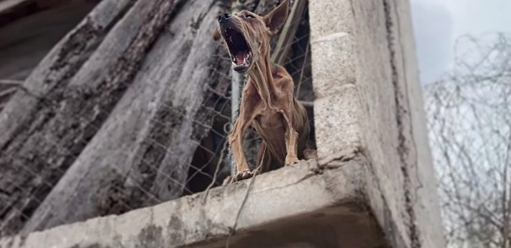 Thunder was discovered in a small village near an airport, barely able to move. His frail body told the story of prolonged suffering. He was dangerously underweight, his strength nearly gone, and heavy chains still clung to him as if they were the last remnants of a life he had been cast out from. Each step he attempted looked like a struggle, his body trembling under the weight of exhaustion and neglect.