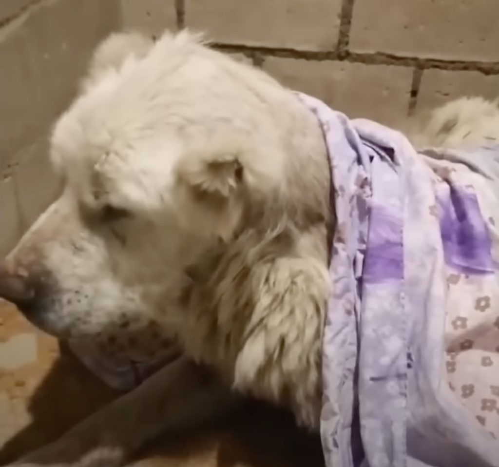 On a scorching summer day, a dog named Arhat was found lying helplessly by a fence, too weak to move. His body told the story of weeks of suffering. For three long weeks, his owner had abandoned him, leaving him with only the occasional scrap of food. By the time help finally arrived, he was starving, dehydrated, and so exhausted that he could no longer stand. His thin body was crawling with ticks, and his spirit seemed to flicker on the edge of giving up. When a rescuer finally approached and placed a bowl of food and water in front of him, the moment was unforgettable. Arhat, overcome with emotion, let tears roll down his face, as if he could finally feel a glimmer of kindness after so much neglect.