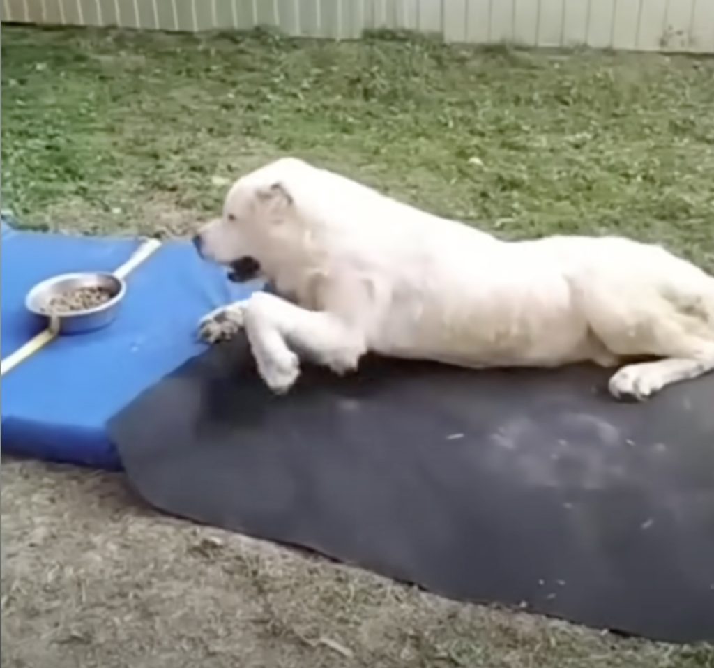 The caretakers turned everyday moments into opportunities for progress. They placed his food bowl just out of reach, gently pushing him to crawl toward it and strengthen his muscles. They celebrated even the smallest movements—an attempt to push forward, a shuffle of his legs, the spark of determination in his eyes. Each tiny step forward was a victory. The people around him poured their hearts into the process, often exhausted themselves, but inspired by Arhat’s spirit. They saw in him not just a paralyzed dog, but a soul fighting for life, eager to overcome the limitations placed upon him.