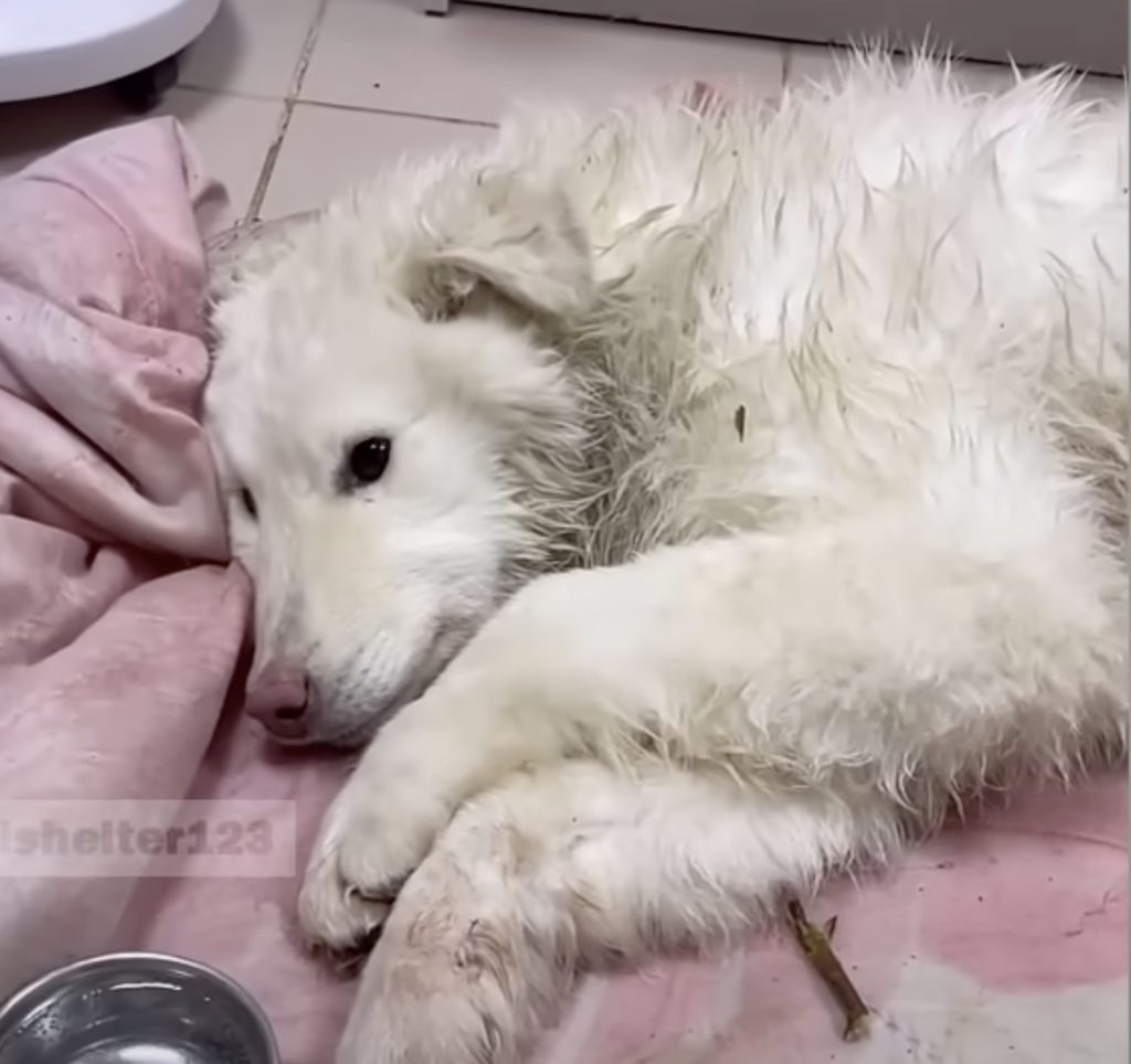 The rescuer acted quickly, gathering the weak dog into his arms and rushing him to the nearest veterinary clinic. The situation was critical from the very start. Bely’s body temperature had dropped to dangerously low levels, and the medical team feared the worst. They whispered that his chances of survival were no more than ten percent. Despite their best efforts, the small rural clinic simply did not have the tools or resources needed to treat injuries of this severity. Faced with a difficult choice, the rescuers decided to make the long journey to Moscow, hoping that a modern veterinary hospital there could provide the advanced care that might save him.