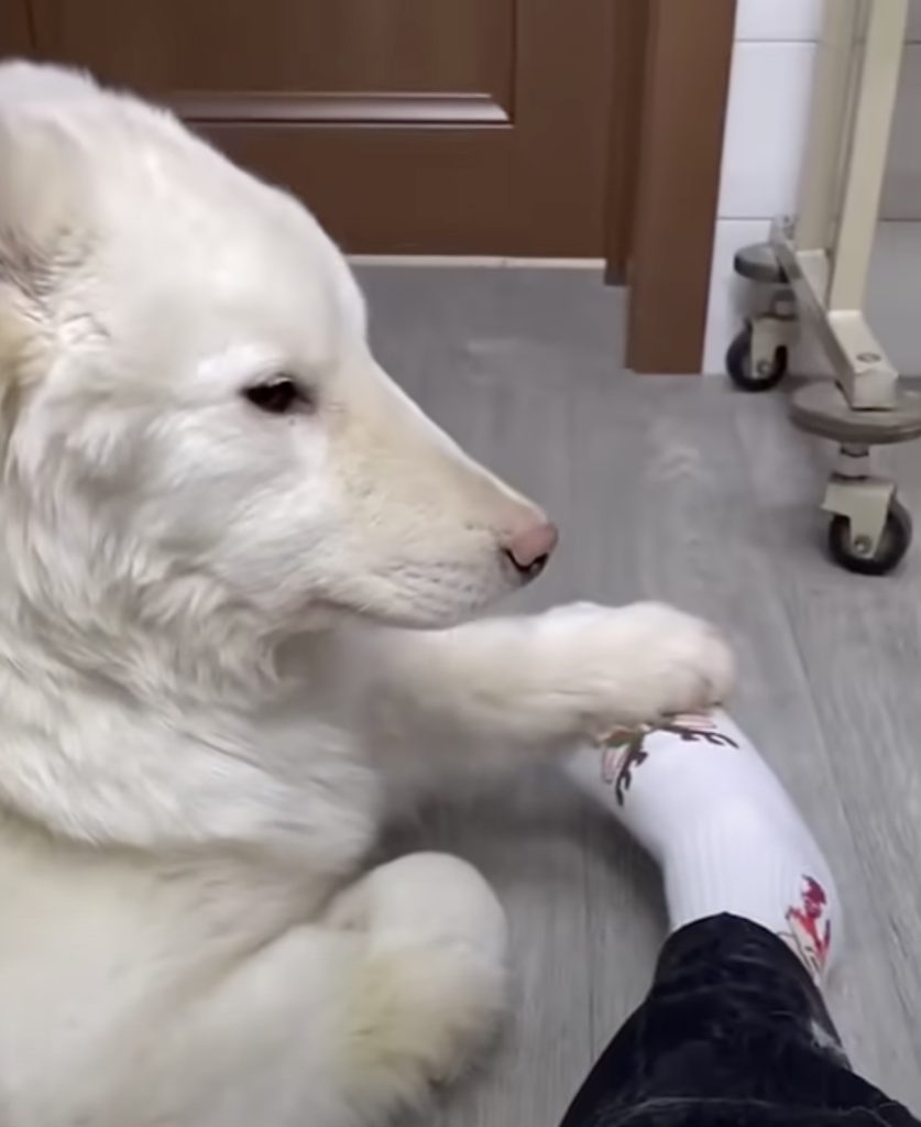 The story begins on a bitter winter day when a man went out searching for his own missing dog. His heart was heavy with worry, but what he found that day was something he never expected. Buried beneath layers of snow, he saw a faint movement. As he brushed away the ice, he uncovered the fragile body of a white dog who was barely clinging to life. This dog, later given the name Bely, had been left in the freezing cold, his lower body frozen stiff and unable to move. Around his neck was still a leash, suggesting that someone had once cared for him but had abandoned him in the most vulnerable moment of his life.