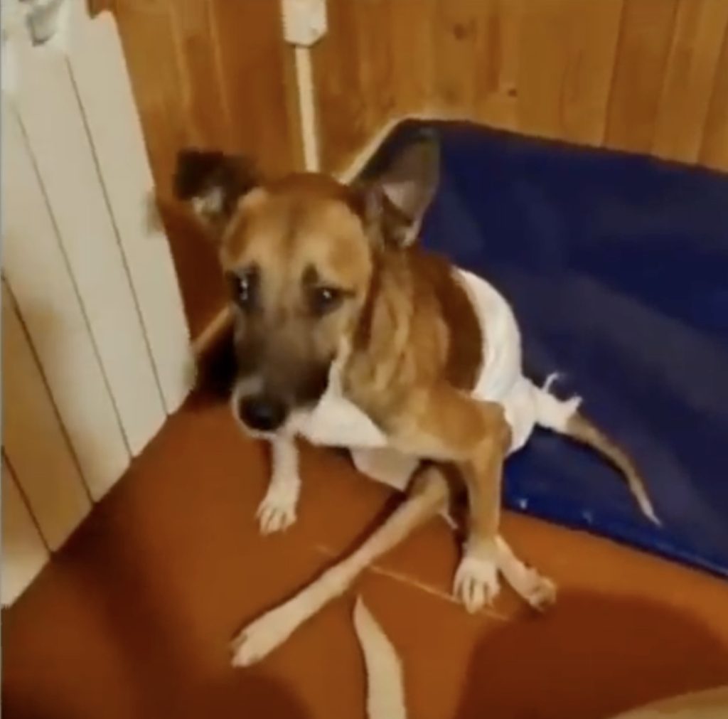 When Ryzhik was first brought into the veterinary clinic, the staff assumed he had been struck by a passing car. His weakness, his inability to walk, and the pain in his body all seemed to suggest a tragic accident on the road. Everyone braced themselves for what they thought would be a difficult but straightforward recovery process. But when the X-ray results came back, the truth was far more heartbreaking than anyone expected. Ryzhik had not been hit by a car at all. Instead, he was carrying two bullets inside his small body. The X-ray revealed the damage clearly: his spinal cord and internal organs had been injured, leaving him paralyzed and unable to relieve himself without assistance.