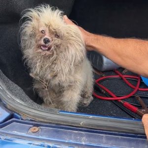 They were hidden in plain sight—two dogs living in filth and despair, right in their owner’s front yard. Their coats were so severely matted, tangled with grime and hardened patches of dirt, they…