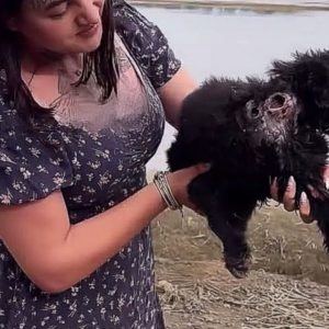 On a cold, rain-soaked afternoon, a heartbreaking scene unfolded—a tiny, trembling puppy was spotted alone in the middle of a deserted road. Its fur was drenched, its body shivering, and its eyes wide…