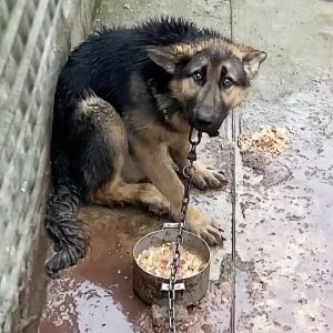For months, Alpha lived chained in a narrow, damp alley that reeked of decay and hopelessness. His body was frail, his fur matted and dull, and his eyes carried the heavy weight of…