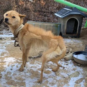 Donghee was found in one of the most heartbreaking conditions imaginable—a small, frail dog, chained tightly to a wooden post, abandoned in a remote, freezing area during the peak of winter. Her ribs…