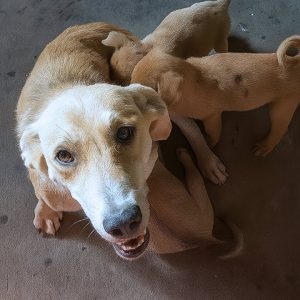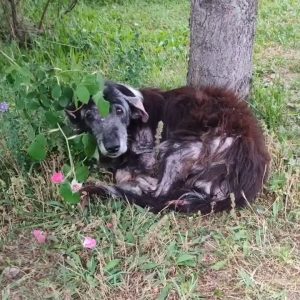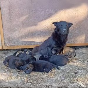 In a forgotten stretch of dry, desolate land, a thin dog stood silently, her ribs showing through her coarse fur, her eyes filled not with fear for herself, but with quiet desperation for…