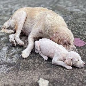 Ala, a resilient mother dog, had already experienced more hardship than most could imagine by the time she was rescued. Her body told a quiet story of survival—her tail had been fractured, likely…